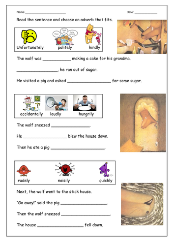 Adverbs And The True Story Of The Three Little Pigs Teaching Resources
